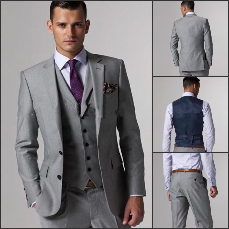 Cheap Light Grey Wedding Suit Blue Tie | Free Shipping Grooms ...